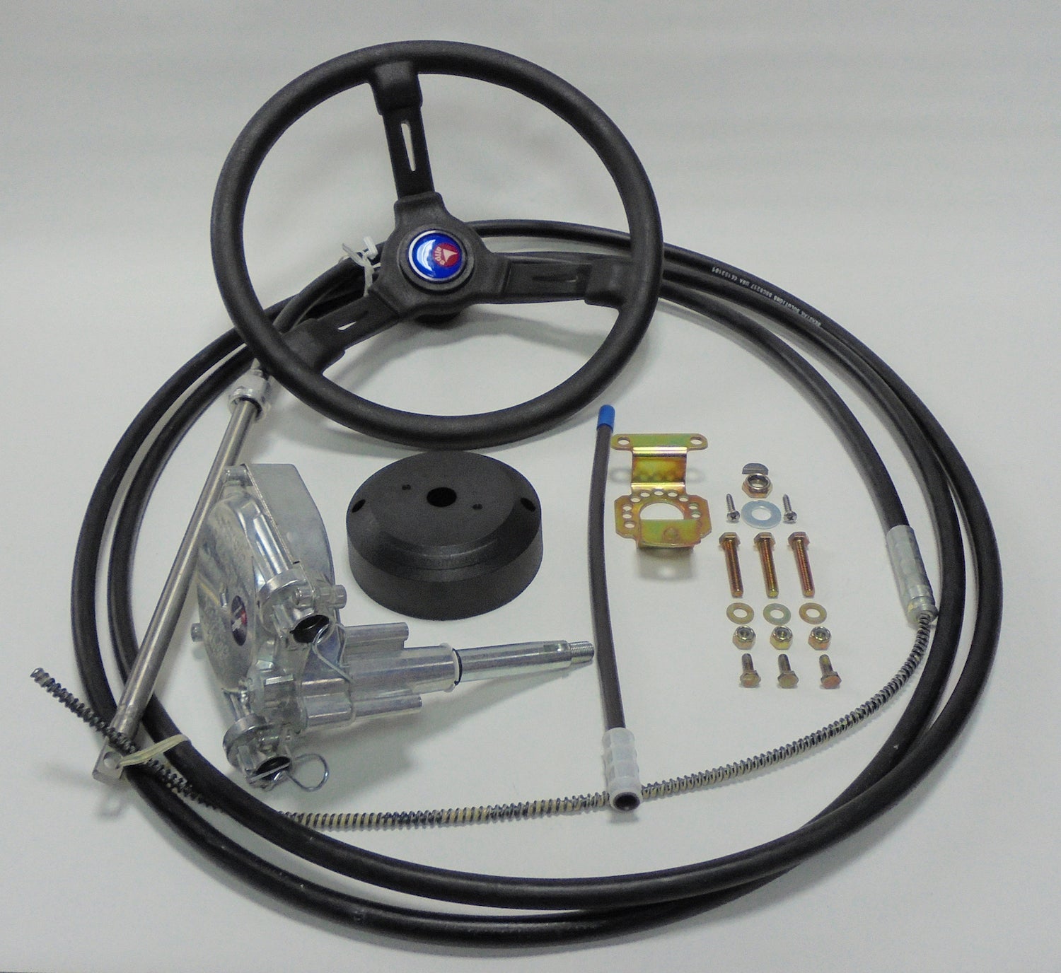 Set including: helm, steering cable, wheel, mounting kit